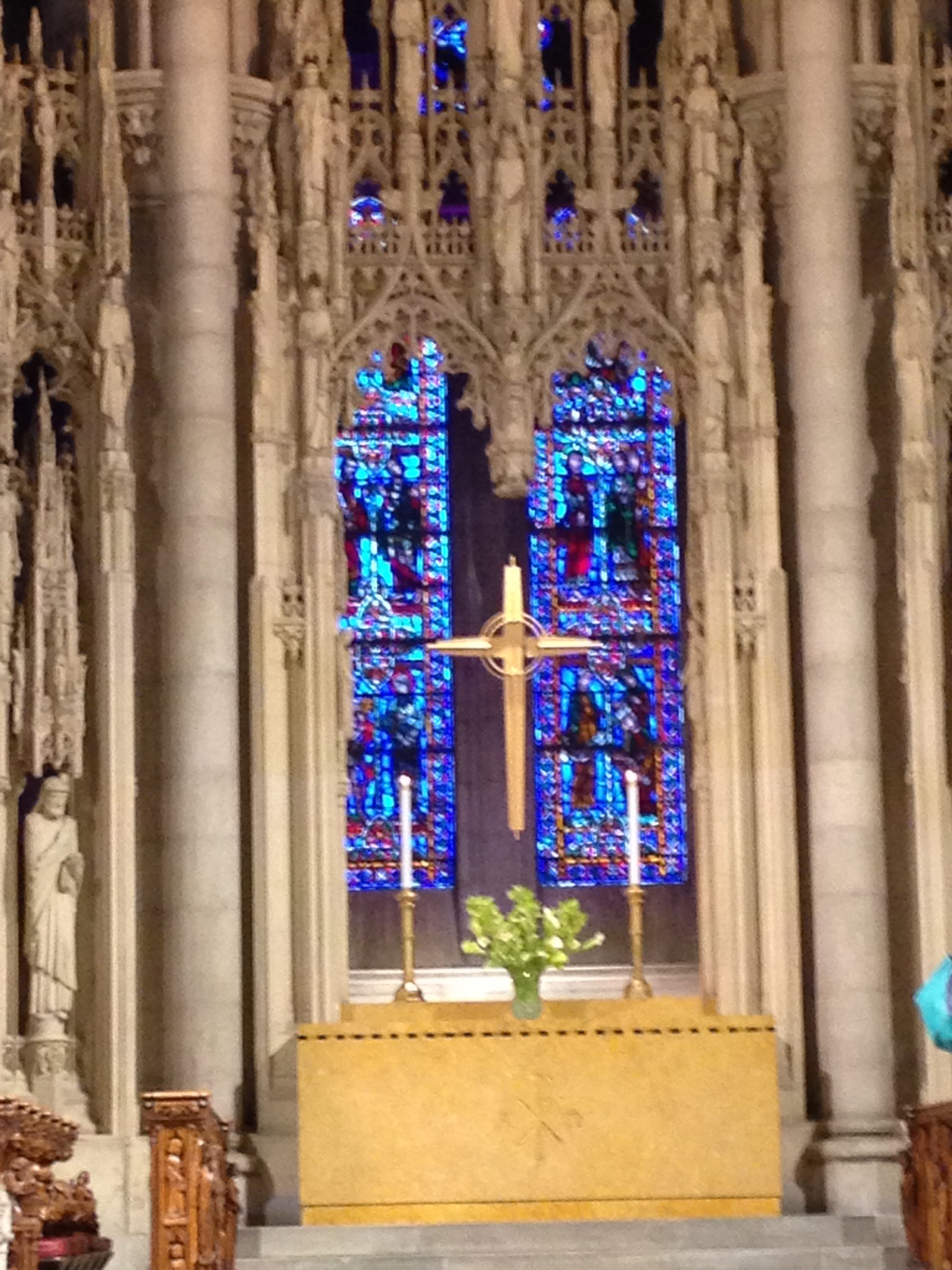 The service was filled with Easter joy! The pipe organ rang out and the choir almost lifted the roof off the ceiling. Although Riverside Church is cathedral like is size and structure, the atmosphere, stain glass windows and congregation reminded us of our home church, Takoma Park Baptist in Washington DC. At the end of the service it was announced that next Sunday the choir would be in the pews and scaffolding would be around the altar. We were glad we came when we did.