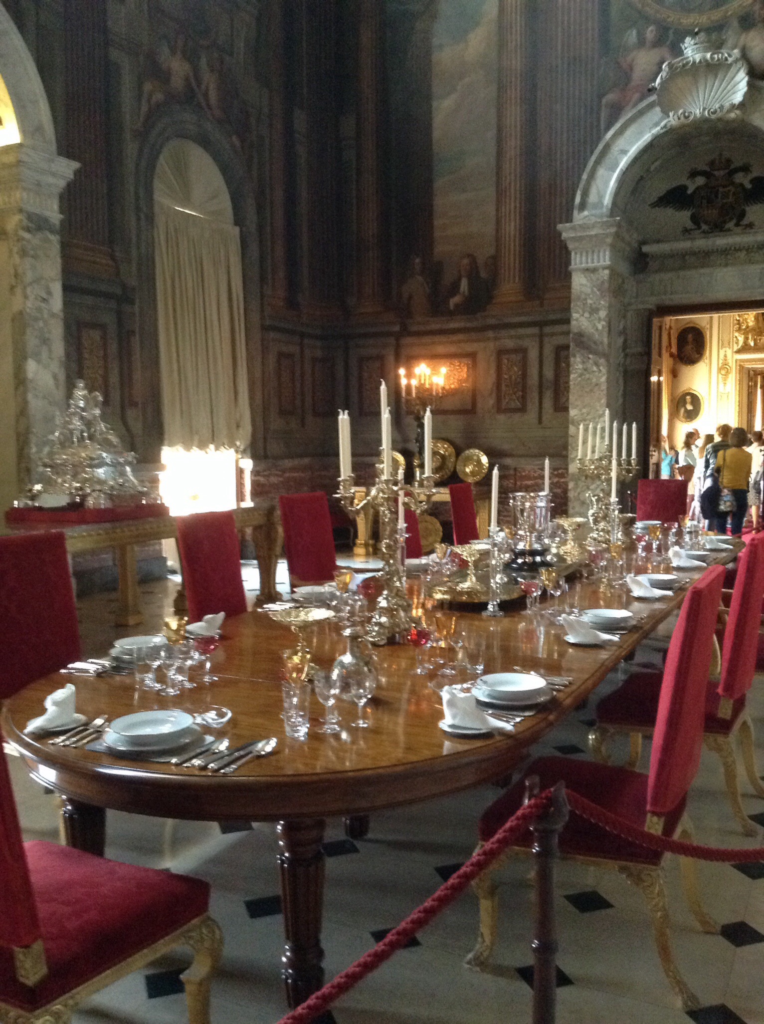 Our second “tour” was of the rooms inside the palace. The art and furnishings were exquisite. The long solid oak dinnig table was set for a formal dinner. (fourth picture) Each room was filled with beauty and art.