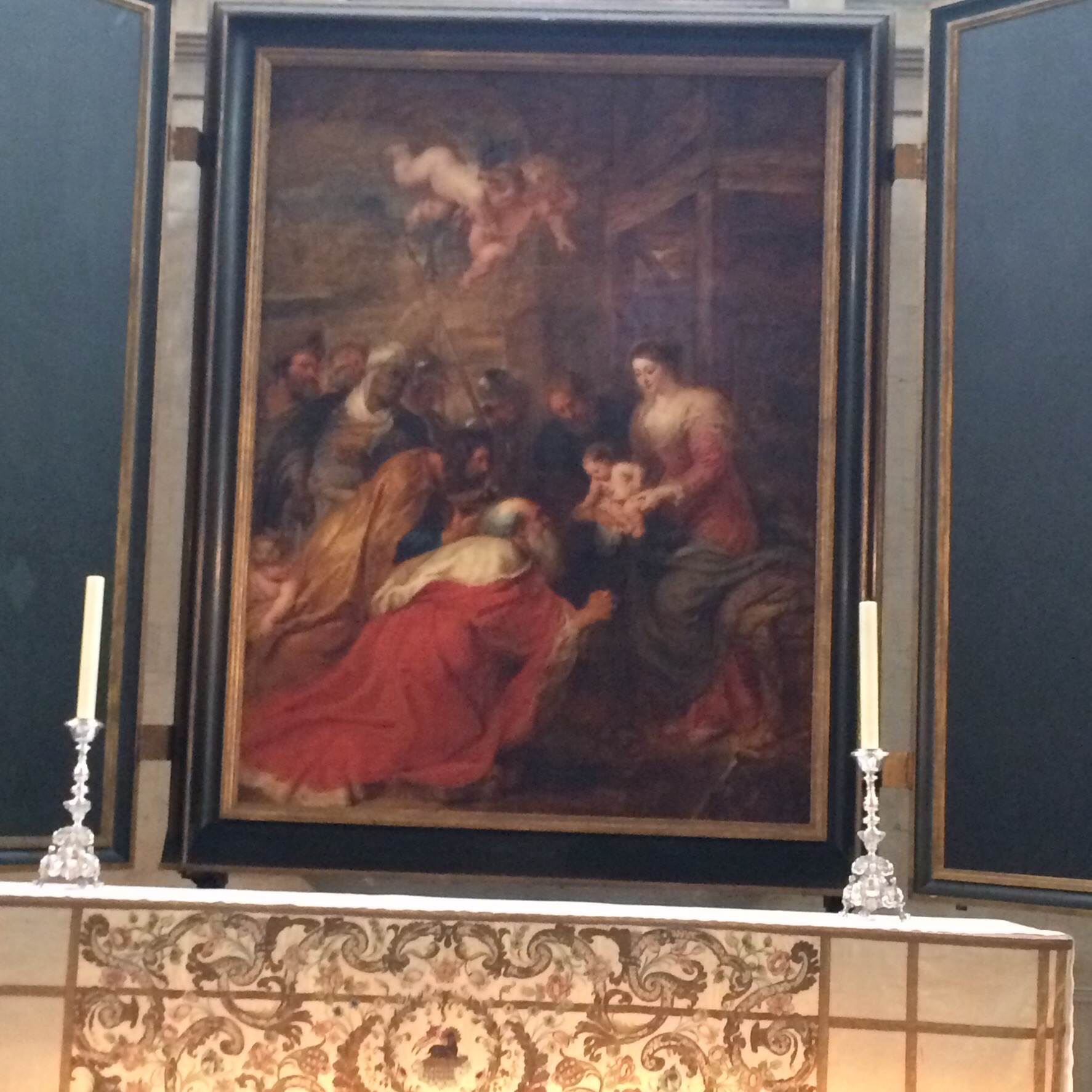 At the High Altar there is the painting by Rubens, The Adoration of the Magi (1634). This painting is a vivid reminder that all people, including royalty, will one day kneel in adoration to Jesus Christ.